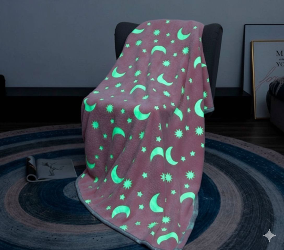 Manta Luminosa franela suave estampada con diseños de lunas estrellas y unicornios |